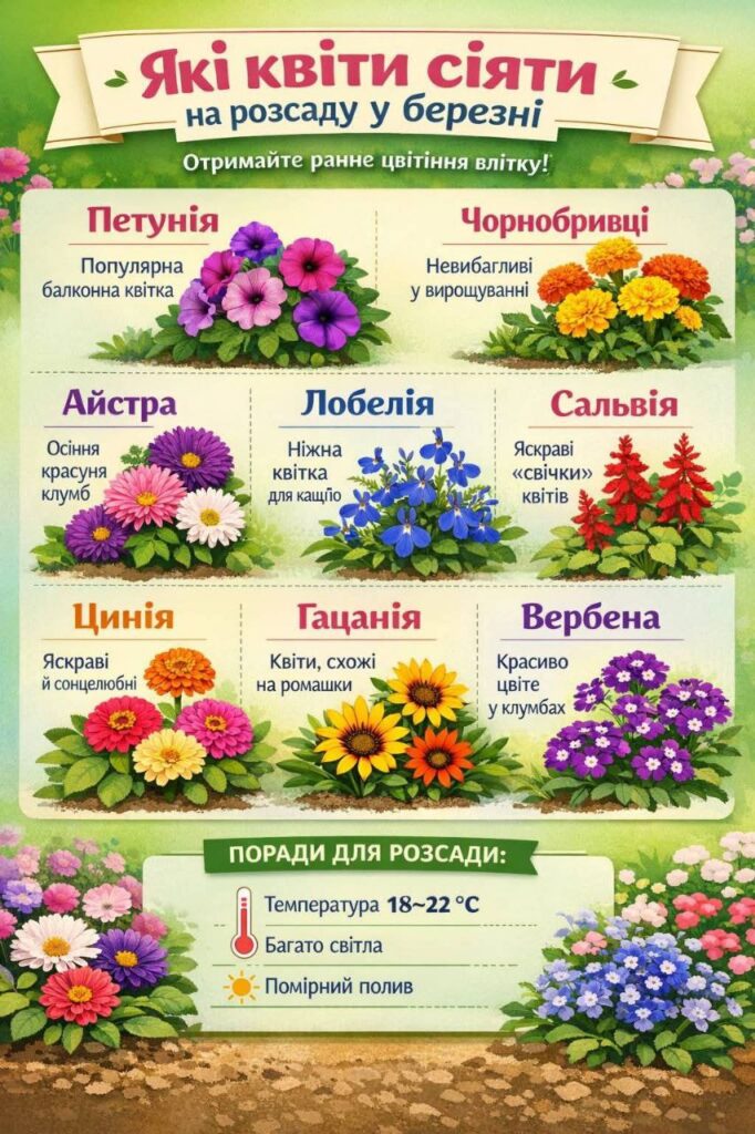 Які квіти сіяти на розсаду у березні — поради для рясного цвітіння. Календар квіткаря — це практичний гід для всіх, хто хоче знати, які квіти та коли висаджувати протягом року в умовах України