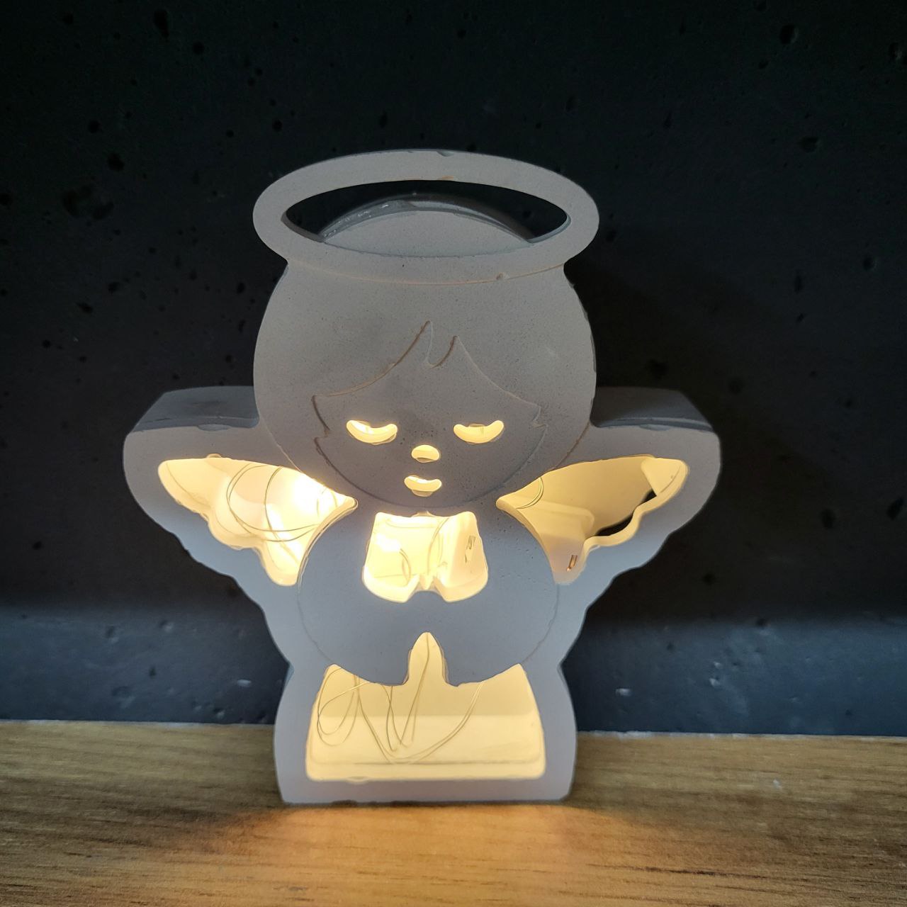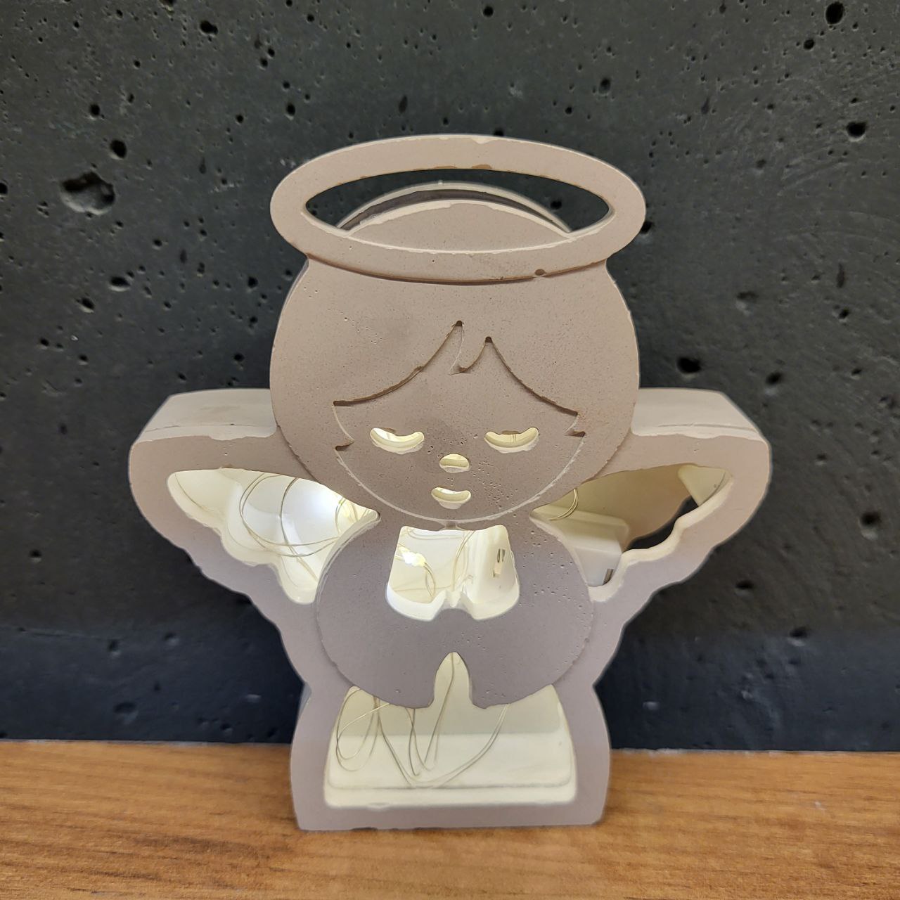 Ангел Led підсвіткою. Висота виробу 12см. Виготовлено з декоративного бетону. Колір білий.