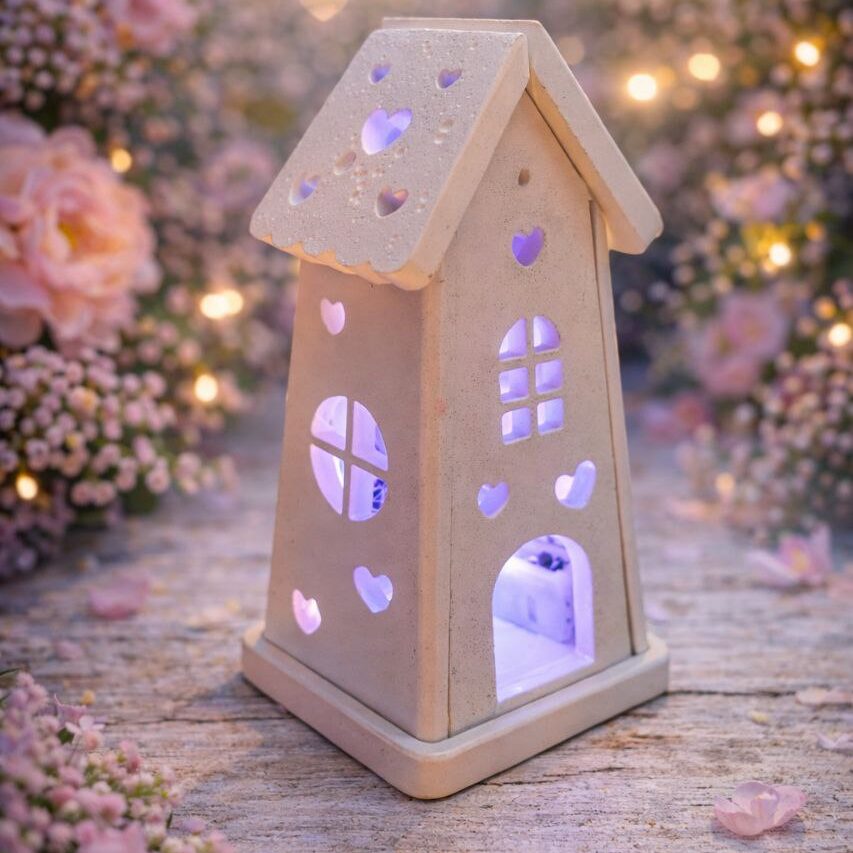 Будиночок високий з LED підсвіткою. Розміри будиночку: 8х8х16см. Матеріал: декоративний бетону. Будиночок можна розкласти на окремі частини. В середині розміщено Led світловий елемент