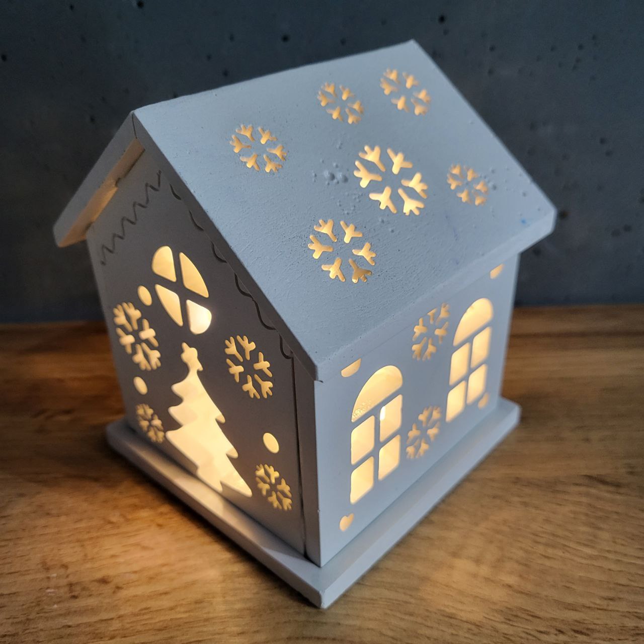 Будиночок з бетону з Led підсвіткою. Виготовлено з бетону та покрито лаком. Розміри будиночку 11х11х13см. Колір Білий. Криша будиночку знімається і в середині може бути розміщено декоративна свічка.