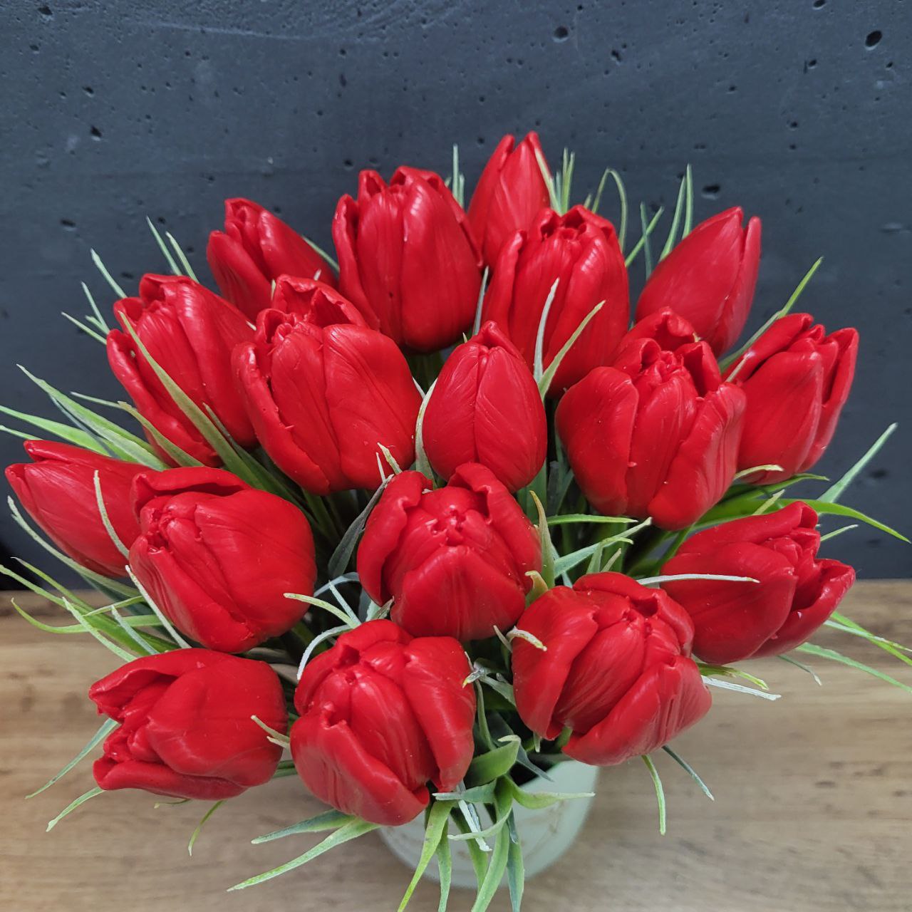 Букет з мила у формі Тюльпанів в коробці. Розмір букету 30х15см Склад -подарункова коробка, квіти – тюльпани з мила з легким приємним ароматом, листочки- штучні. Чудовий подарунок, комплімент ручної роботи Ідеально підходить до Свят: День Валентина, 8 березня, День народження, і просто для створення святкової атмосфери. Оригінальний подарунок для жінки, матусі, бабусі, дівчини, дитині, коханій людині
