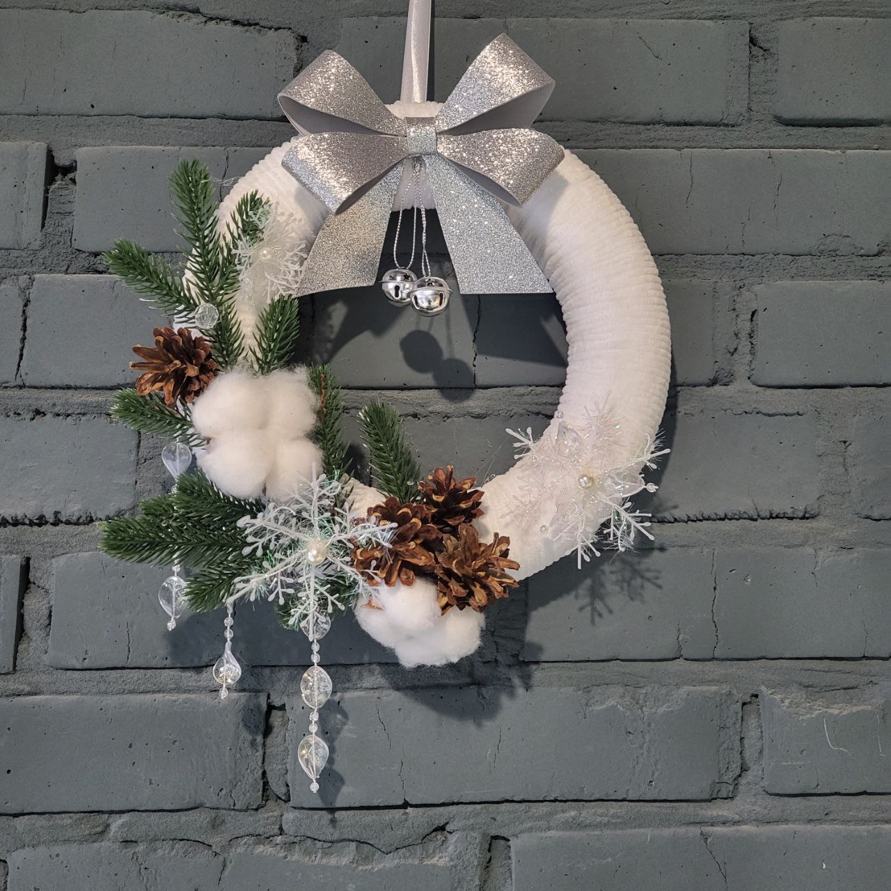 Вінок новорічний білий зі сніжинками. Стильний святковий віночок, який створить атмосферу свята ще з порогу! Ручна робота