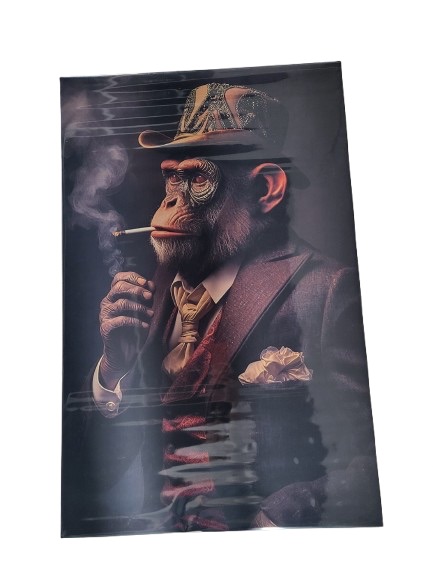 Картина/холст в креативному стилі із зображенням мавпи в дорогому костюмі. Ідеально підходить для інтер’єру барів, чоловічого кабінету, офісу, вітальні. Картина викликає емоції і глибокі роздуми.