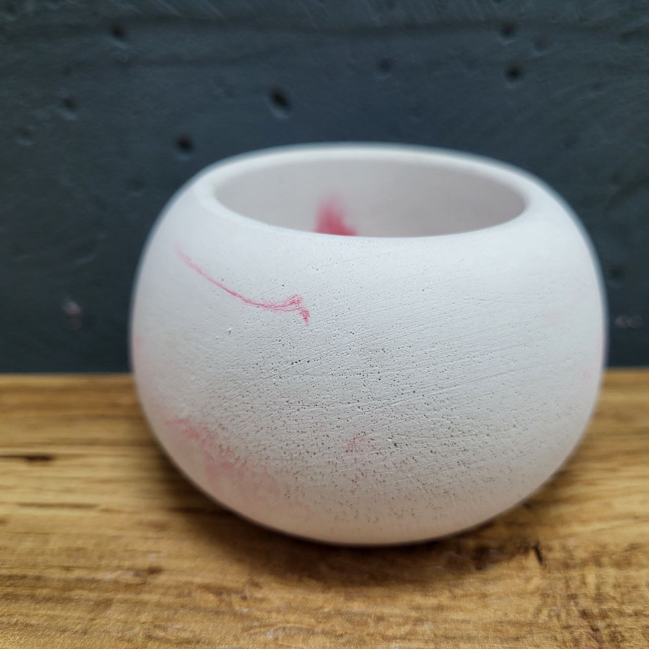 Кашпо круглий великий 6х9см ручної роботи. Виріб покрито лаком. Матеріал: декоративний бетон. Розмір кашпо: 6х9см