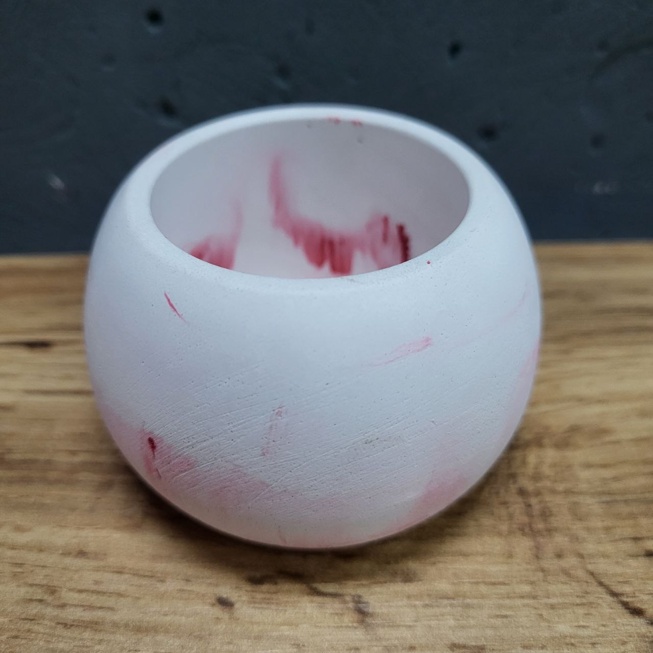 Кашпо круглий маленький 5х7см ручної роботи. Виріб покрито лаком. Матеріал: декоративний бетон. Розмір кашпо: 5х7см