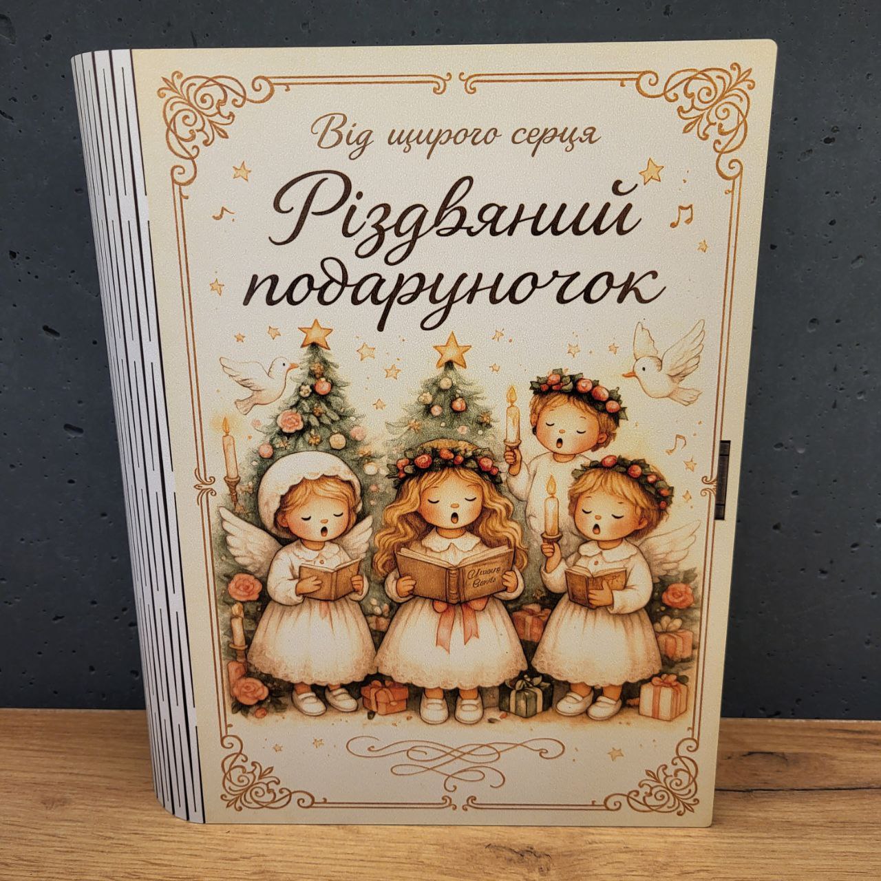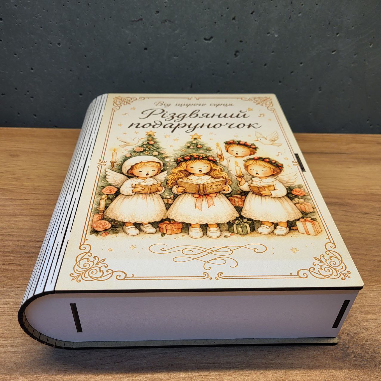 Коробка Різдвяний подаруночок, у вигляді книги 25х20х6см від щирого серця “Різдвяний подаруночок». Матеріал – фанера