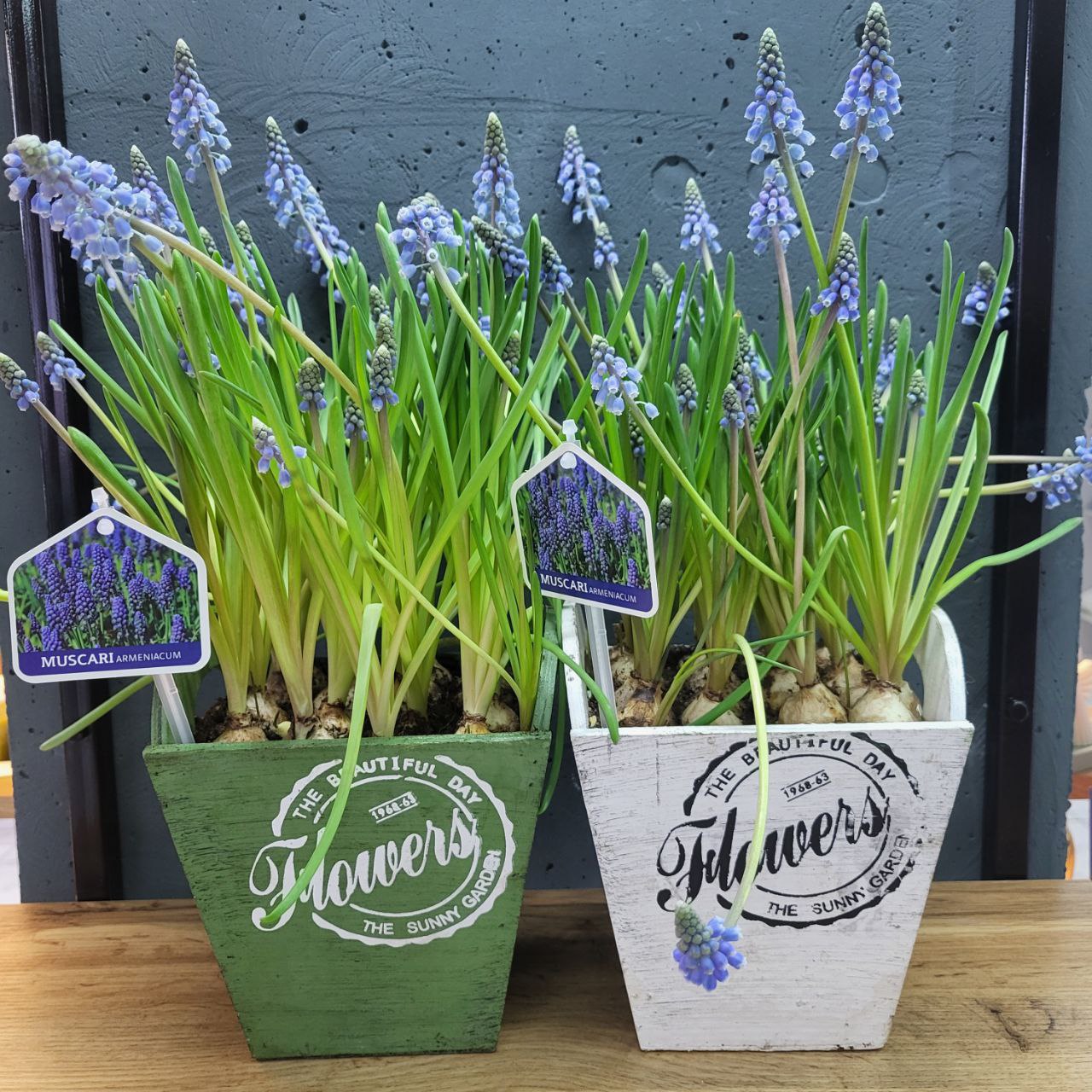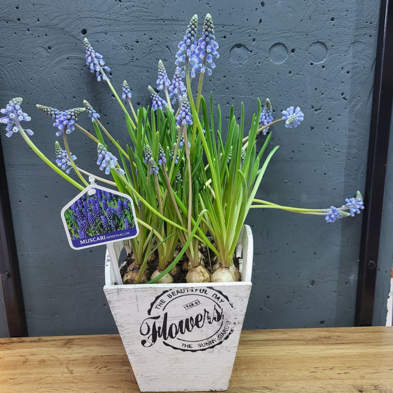 Мускарі в деревʼяному горщику