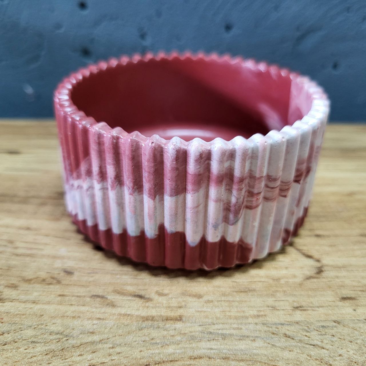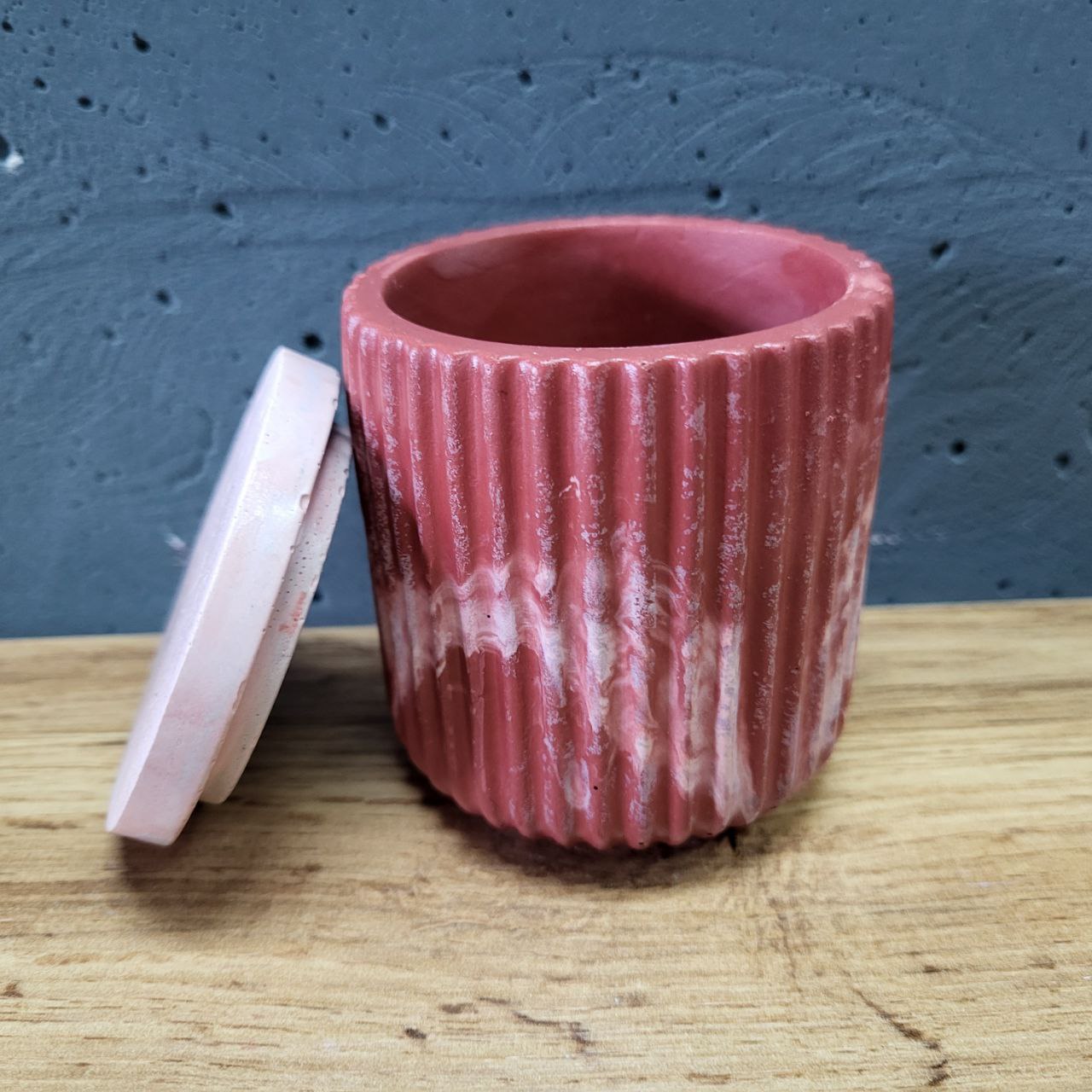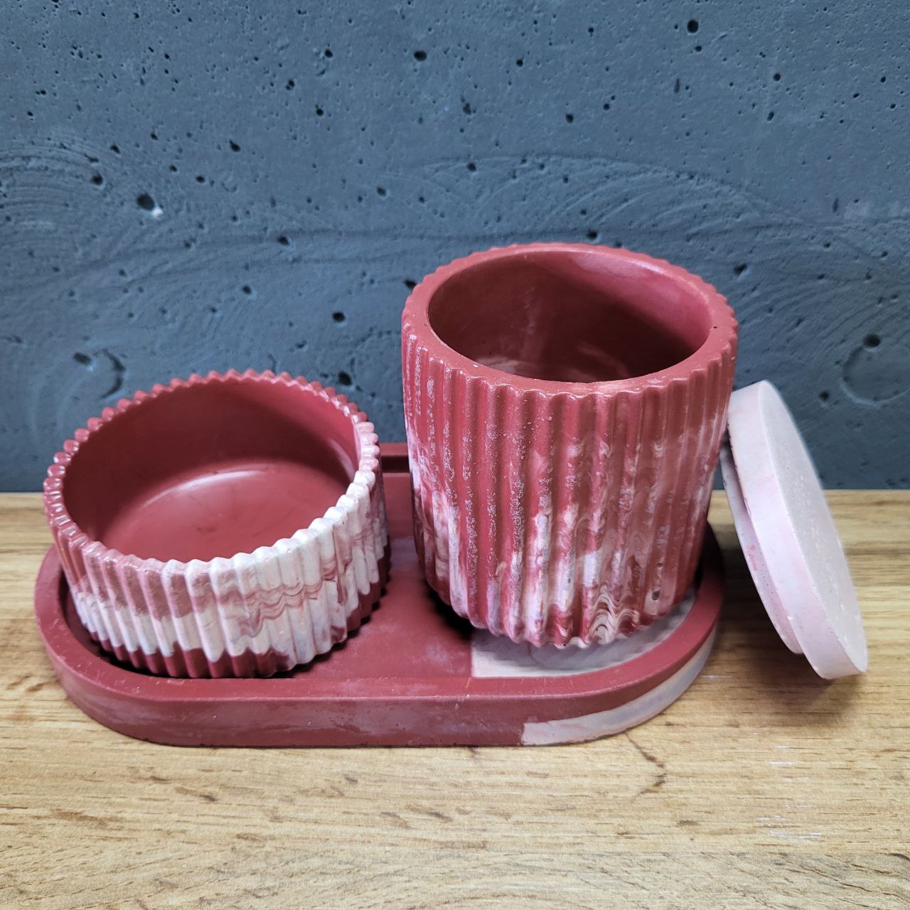 набір виробів з бетону білий з бордовим, підсвічник та горщик