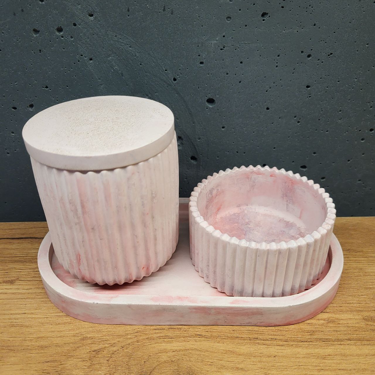 набір виробів з бетону – колір білий з рожевим