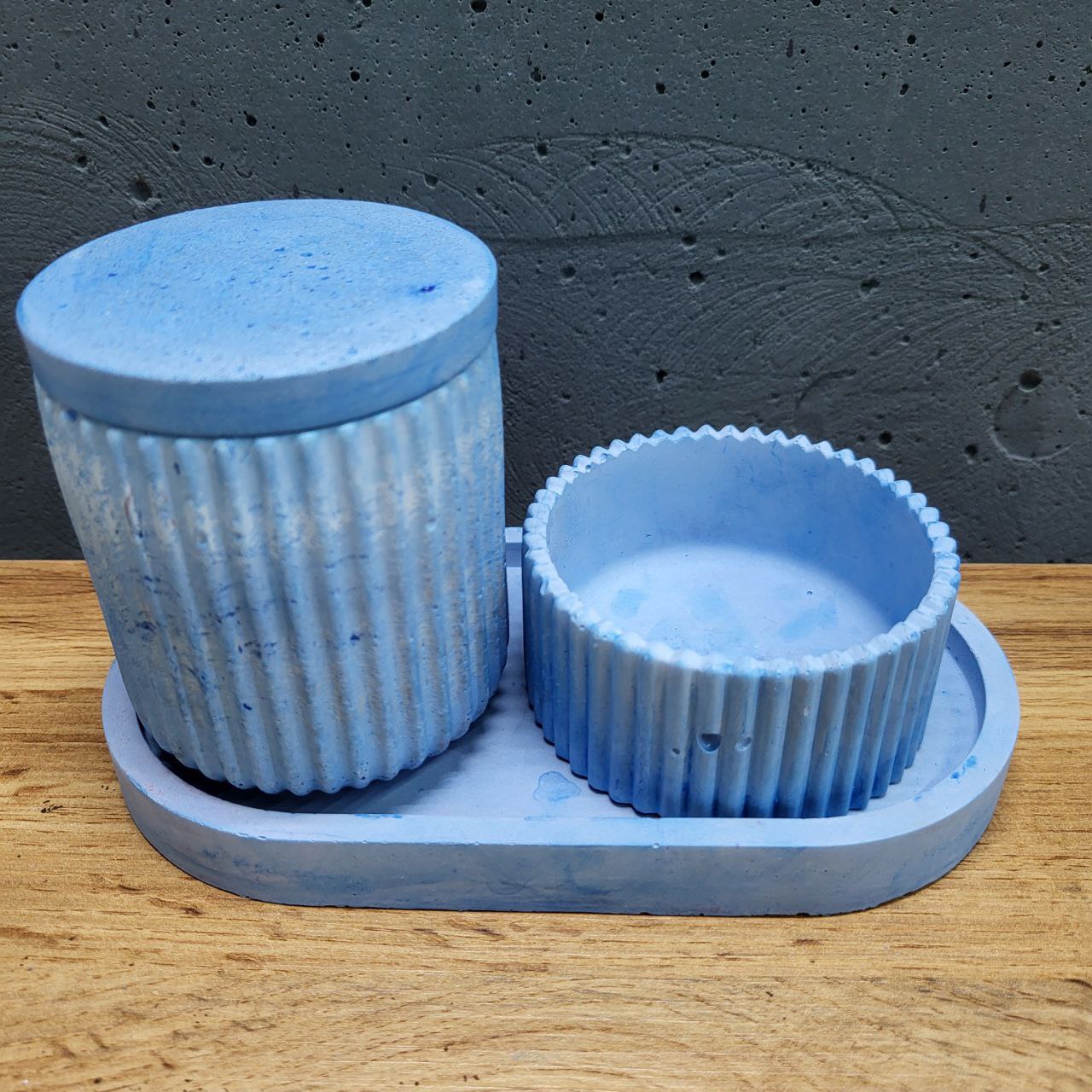 підсвічник та горщик з бетону. колір синій. До набору входять 3 предмети. Ручна робота з декоративного бетону покрита лаком