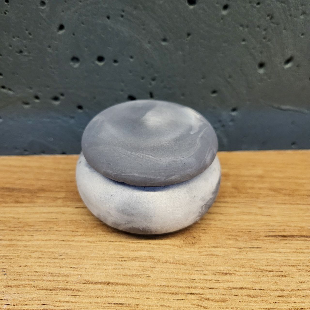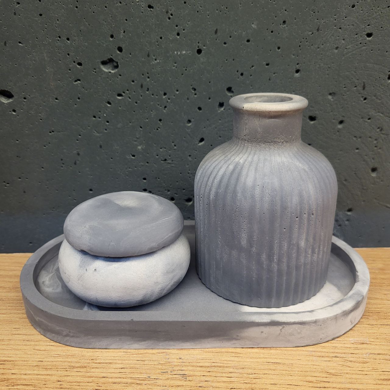 набір виробів з бетону – сірий з білим з вазою. До набору входять 3 предмети. Ручна робота з декоративного бетону покрита лаком