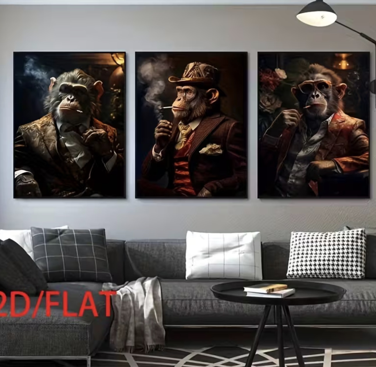 набір картин Аристократ у світі приматів. Набір з 3-х картин. Розміри картин 74.5х55см, 74.5х54см, 74.5х54см