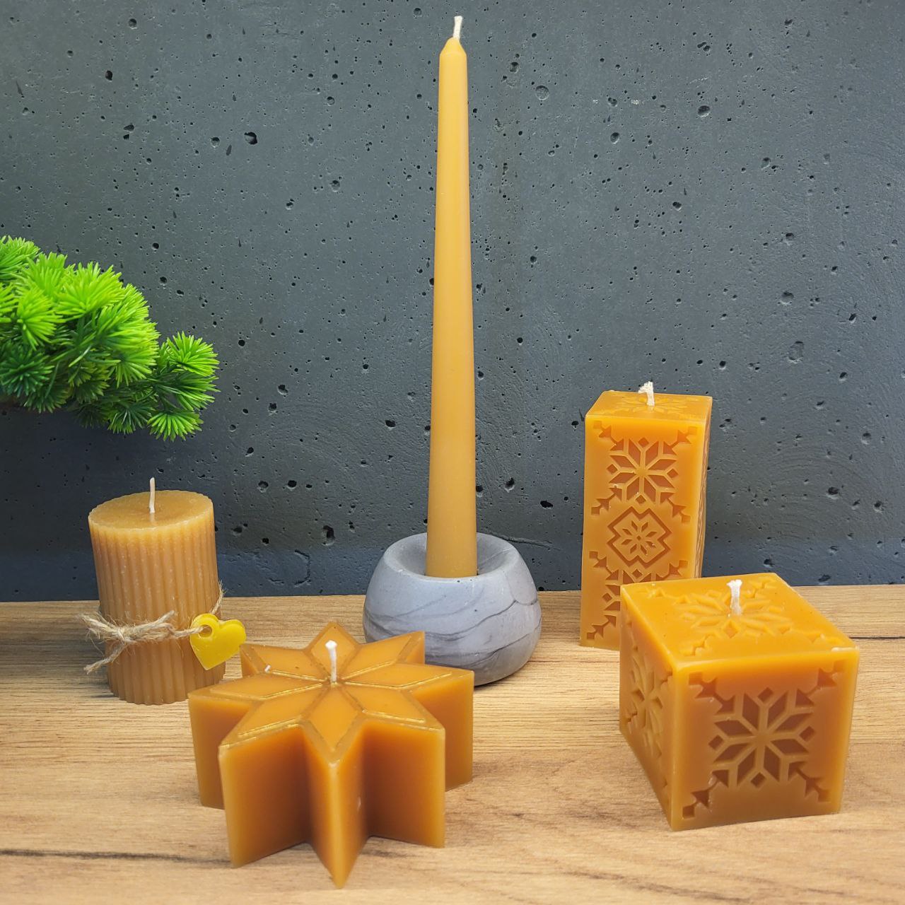 - матеріал: бджолиний віск, бетон