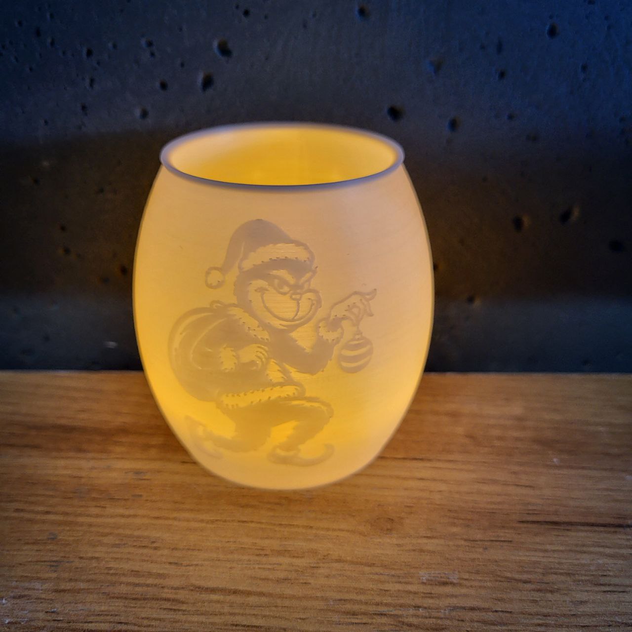 Теплі світлові стаканчики з різдвяними малюнками. М’яко світяться в темряві, виглядають дуже затишно й додають святкового настрою без зайвого блиску. Висота 8 см. В комплекті світловий елемент з джерелом живлення