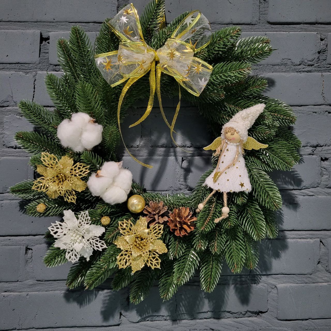 Новорічний вінок з Ангелом розмір 47х47см