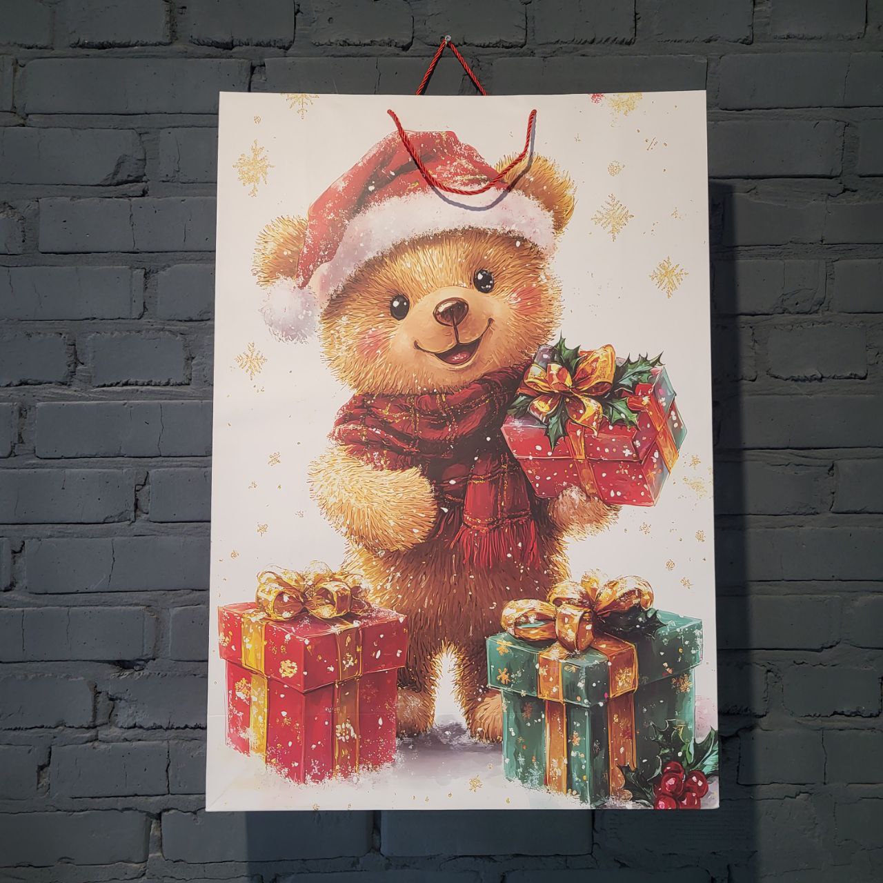 Пакет новорічний з малюнком (супер гігант 72х50х18см). Подарунковий пакет великого розміру для новорічних подарунків.