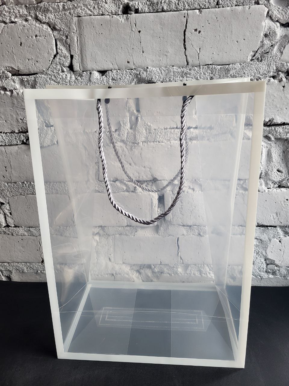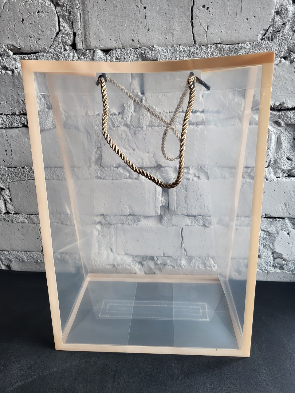 Цей подарунковий пакет виготовлений з міцного прозорого пластику, має зручні ручки — чудовий варіант, коли потрібно показати вміст і водночас зберегти стильний вигляд. Легкий у використанні та підходить для повторного застосування. 🎀