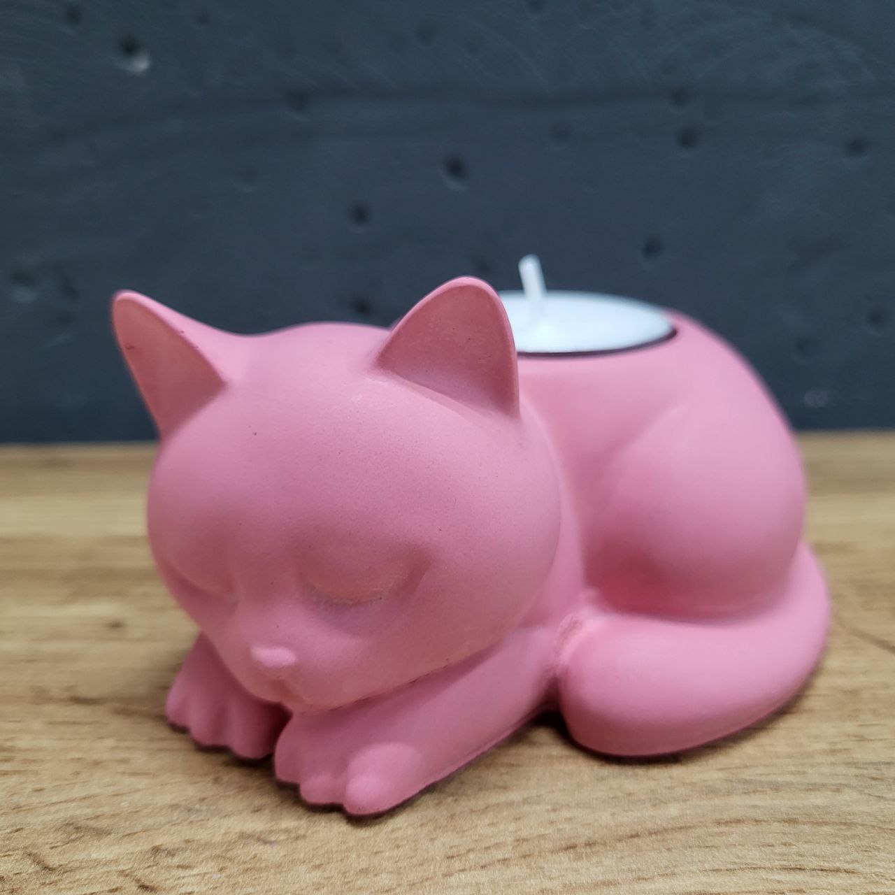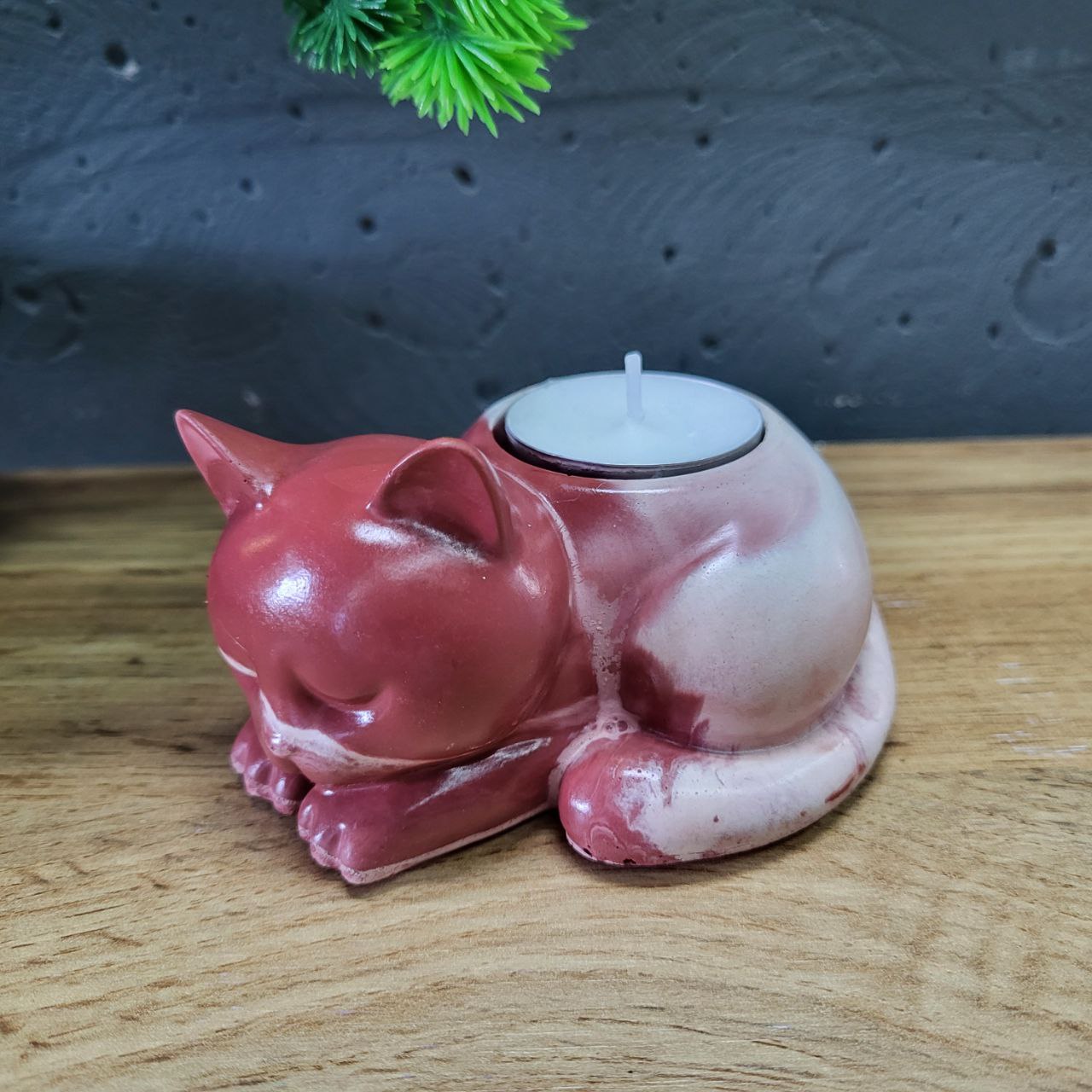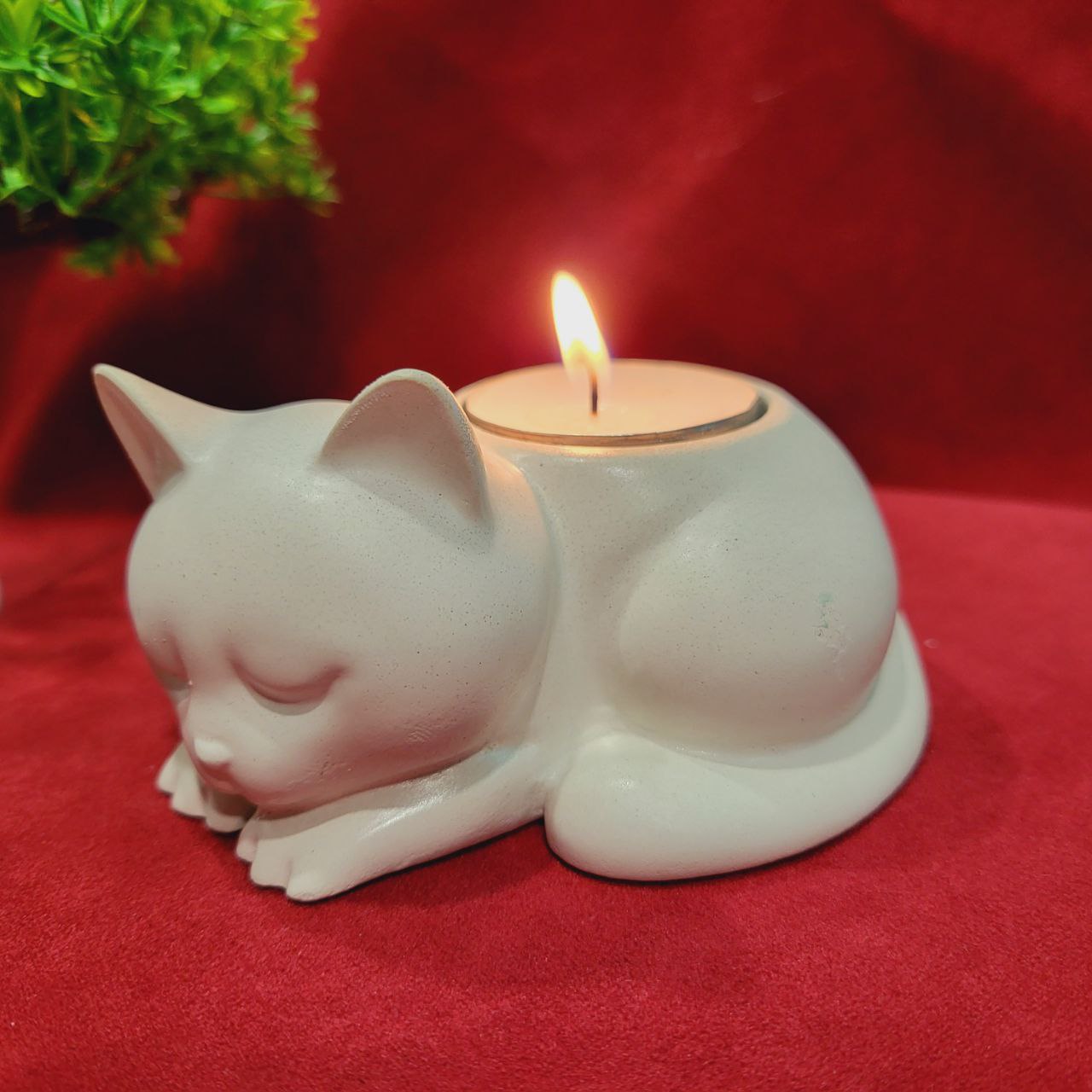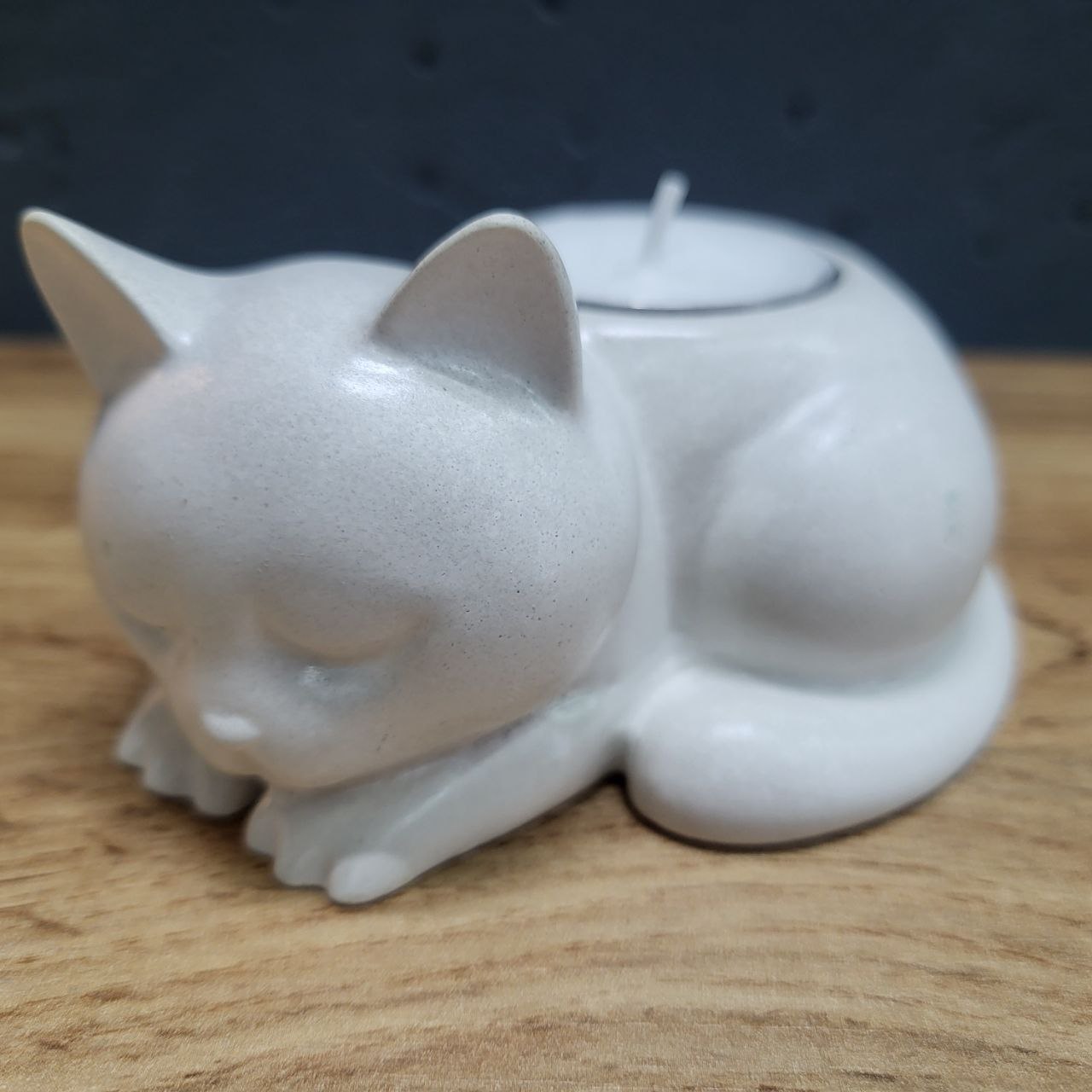 Підсвічник з бетону Котик. Виготовлено з бетону та покрито лаком. Розміри будиночку 10х7.5х5.5см. Підсвічник підходить для свічки – таблетки.